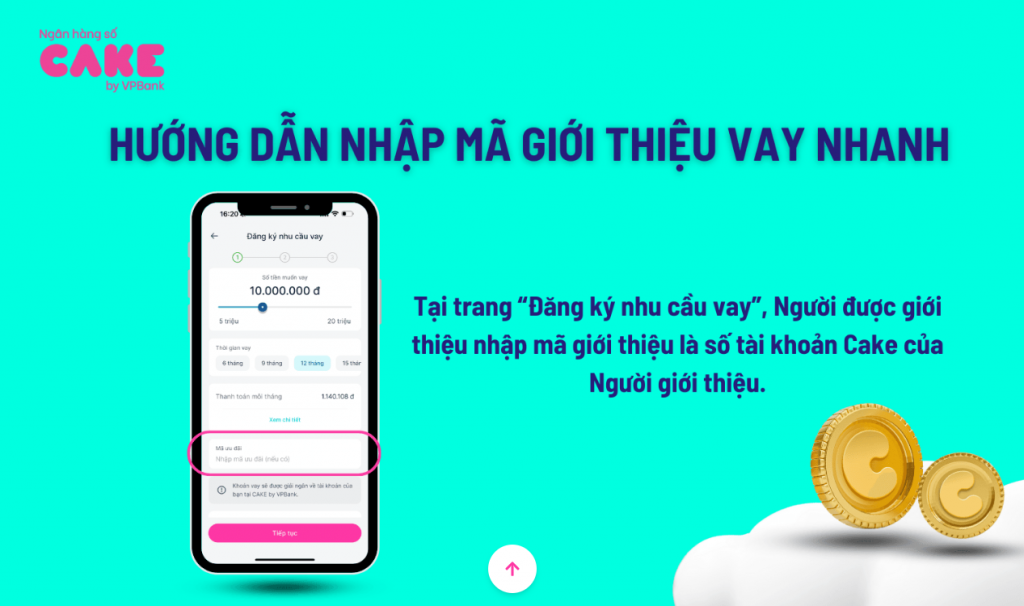 Bước 3: Nhập số của bạn và mã giới thiệu 0775817394 để được tặng những ưu đãi của CAKE nhé 🎁